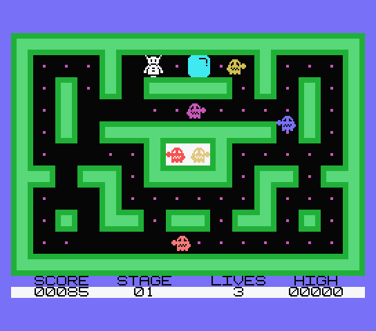 Arcade Pack II, has been found on a disk, so we believe that has been released also on disk media. An evolution of PAC MAN in this Arcade Pack 2, shoot the ice cube to the ghosts!