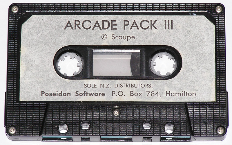 Poseidon Software from New Zealand released Arcade Packs 1, 2 and 3, on cassette tape media.