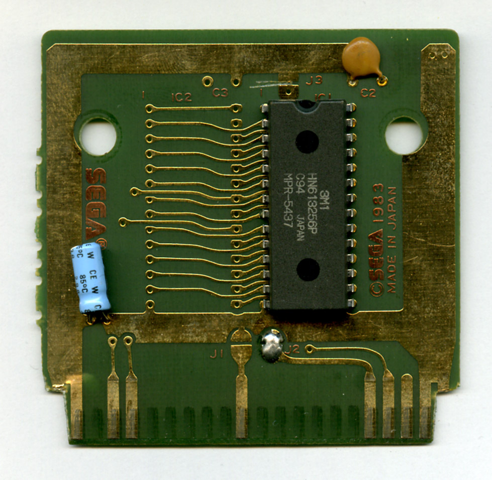 This Cartridge PCB uses only one ROM from HITACHI named HN613256P. This chip is a CMOS Mask Programmable Read Only Memory, designed especially for use in a bus-organized systems.
